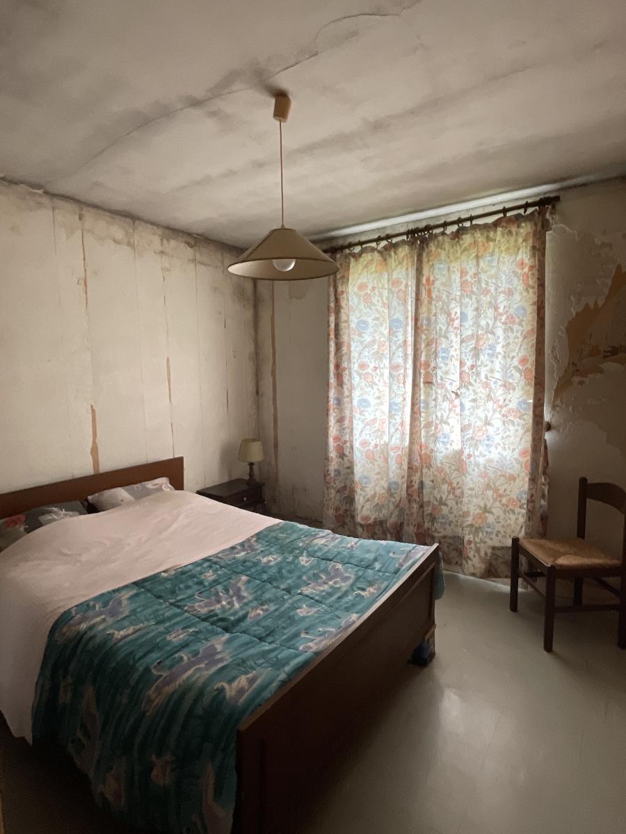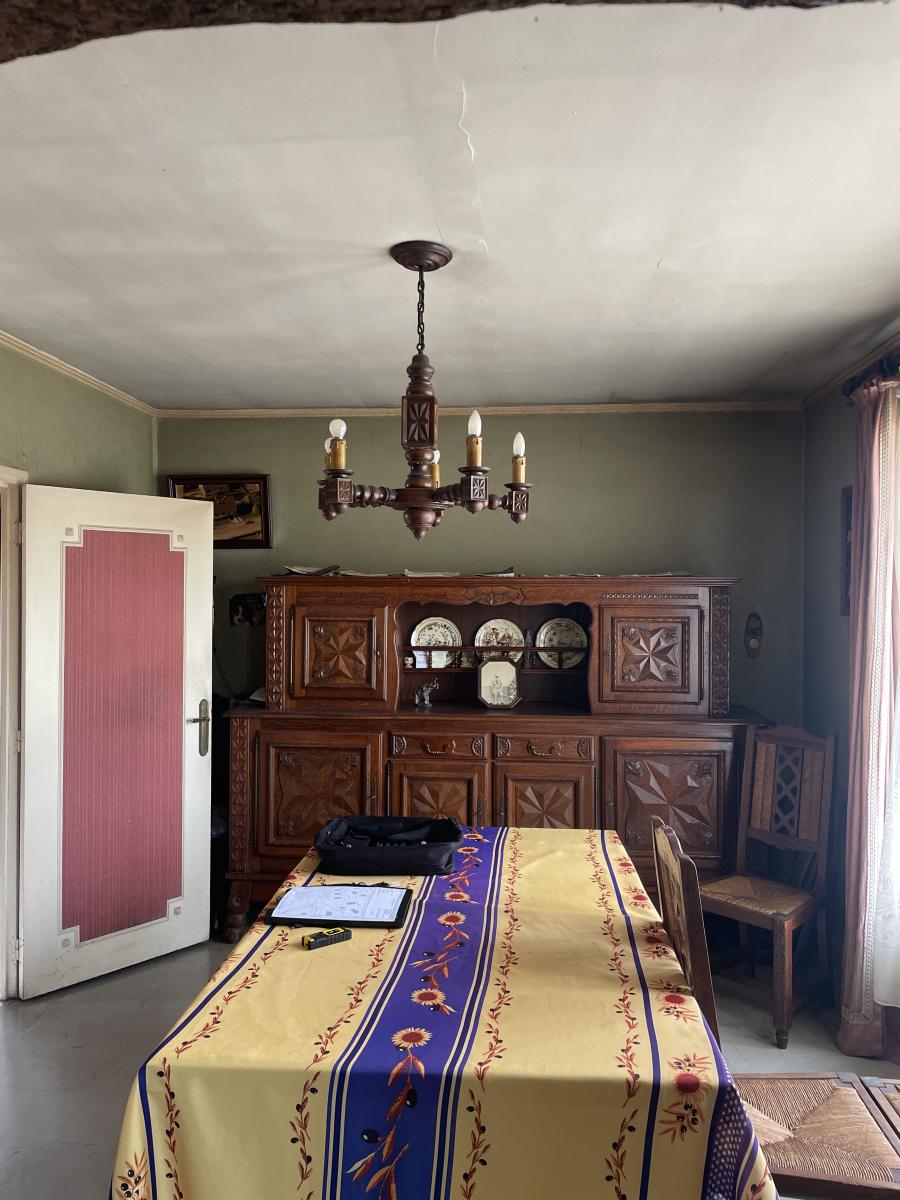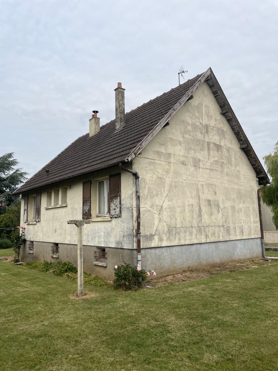 Pavillon individuel semi plain-pied sur sous/sol complet A RENOVER bâti sur 664 m² de terrain et comprenant : couloir d'entrée - cuisine - salle à manger et salon - 2 chambres - wc - dégagement - salle de bains ( baignoire sabot et lavabo) - Au 1er étage : 1 chambre - 1 grenier. Simple vitrage bois - chauffage par 2 poêles.