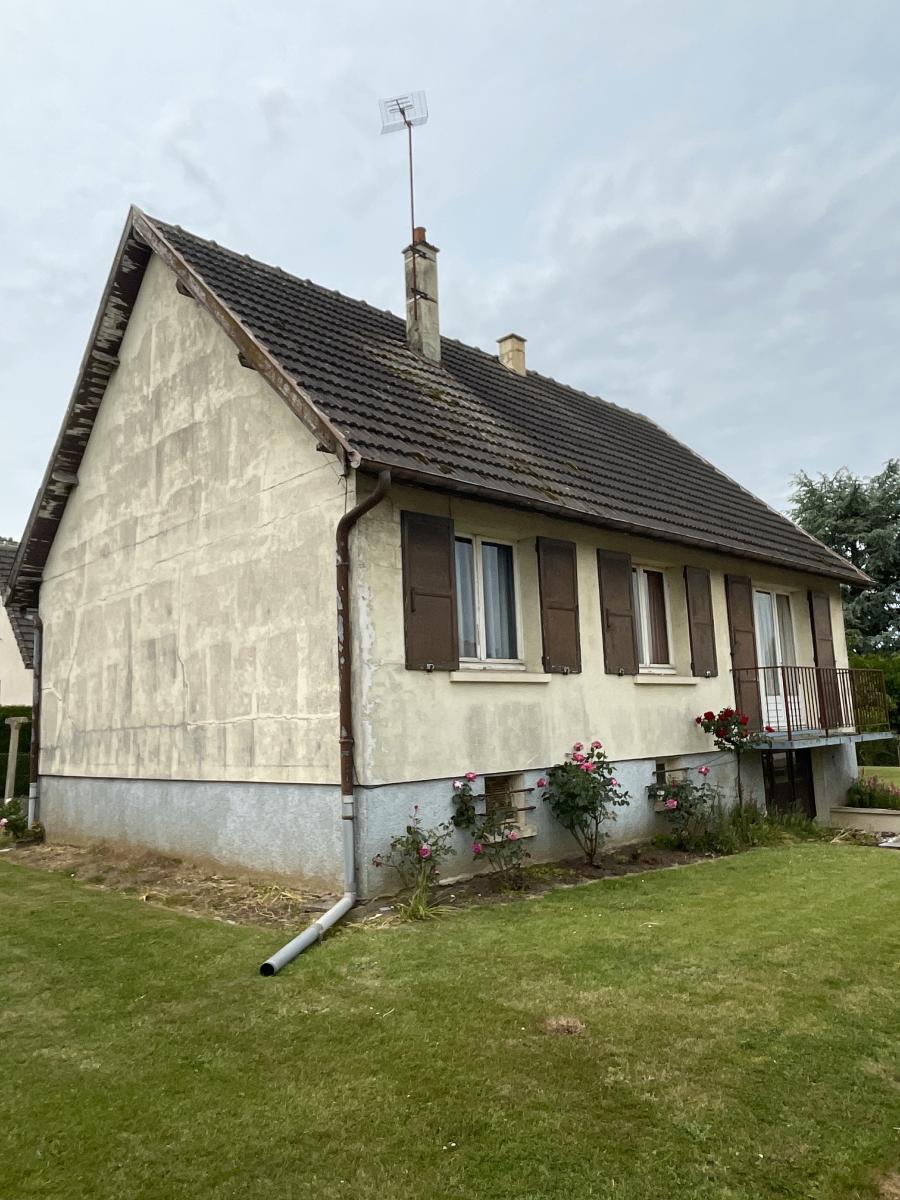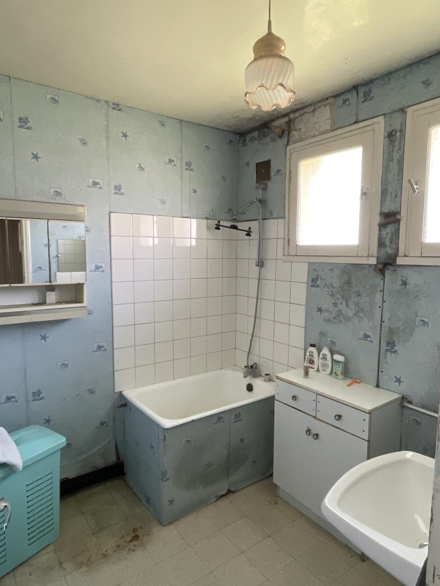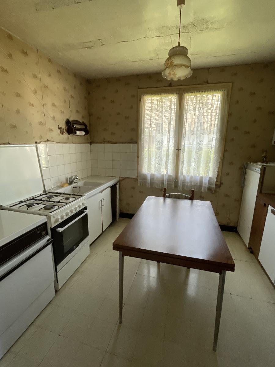 Pavillon individuel semi plain-pied sur sous/sol complet A RENOVER bâti sur 664 m² de terrain et comprenant : couloir d'entrée - cuisine - salle à manger et salon - 2 chambres - wc - dégagement - salle de bains ( baignoire sabot et lavabo) - Au 1er étage : 1 chambre - 1 grenier. Simple vitrage bois - chauffage par 2 poêles.