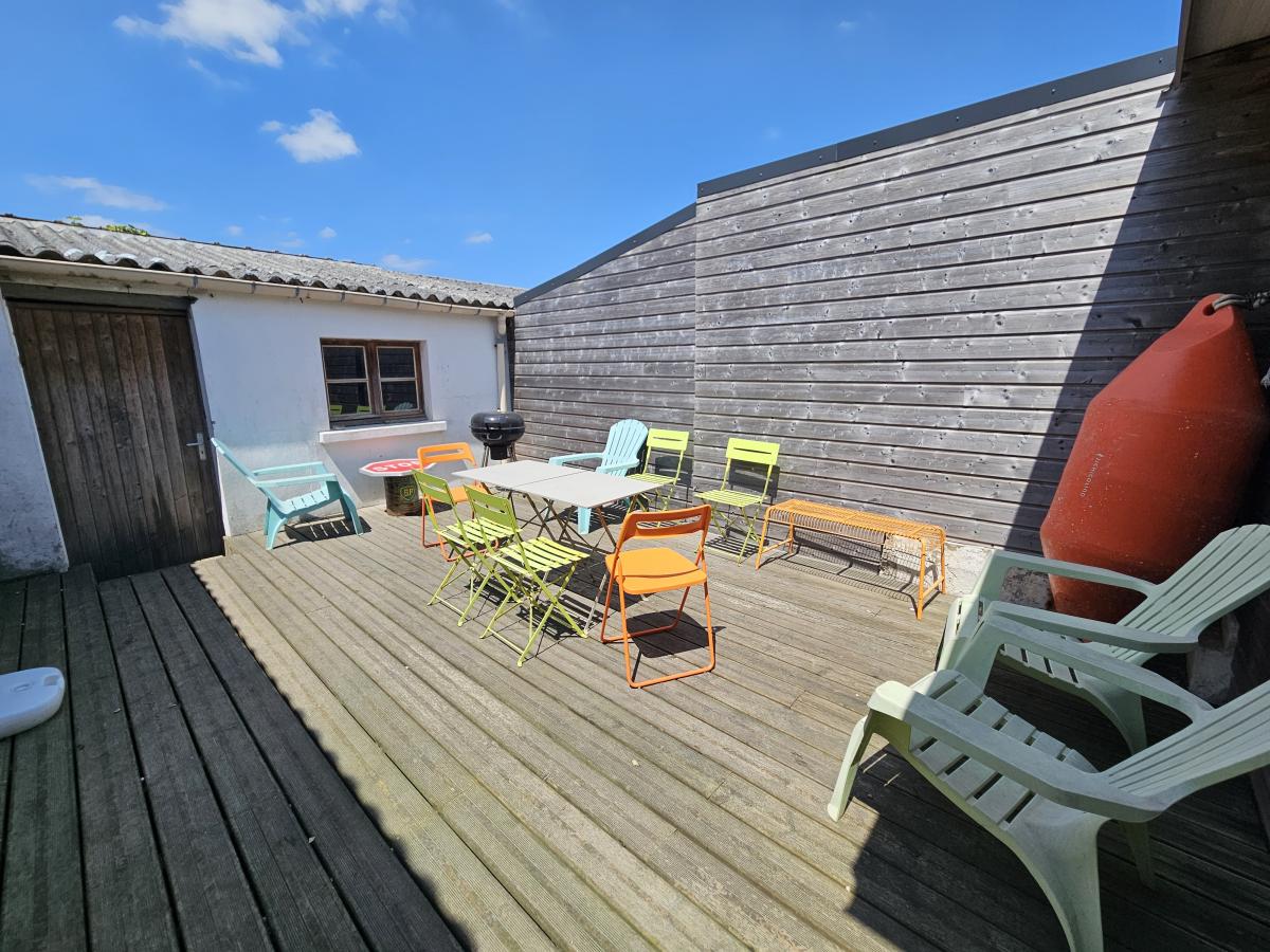 Une terrasse et une dépendance.