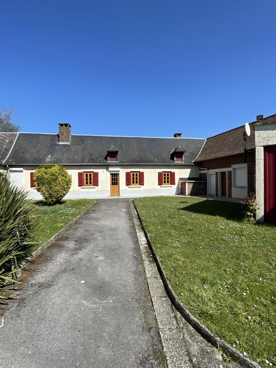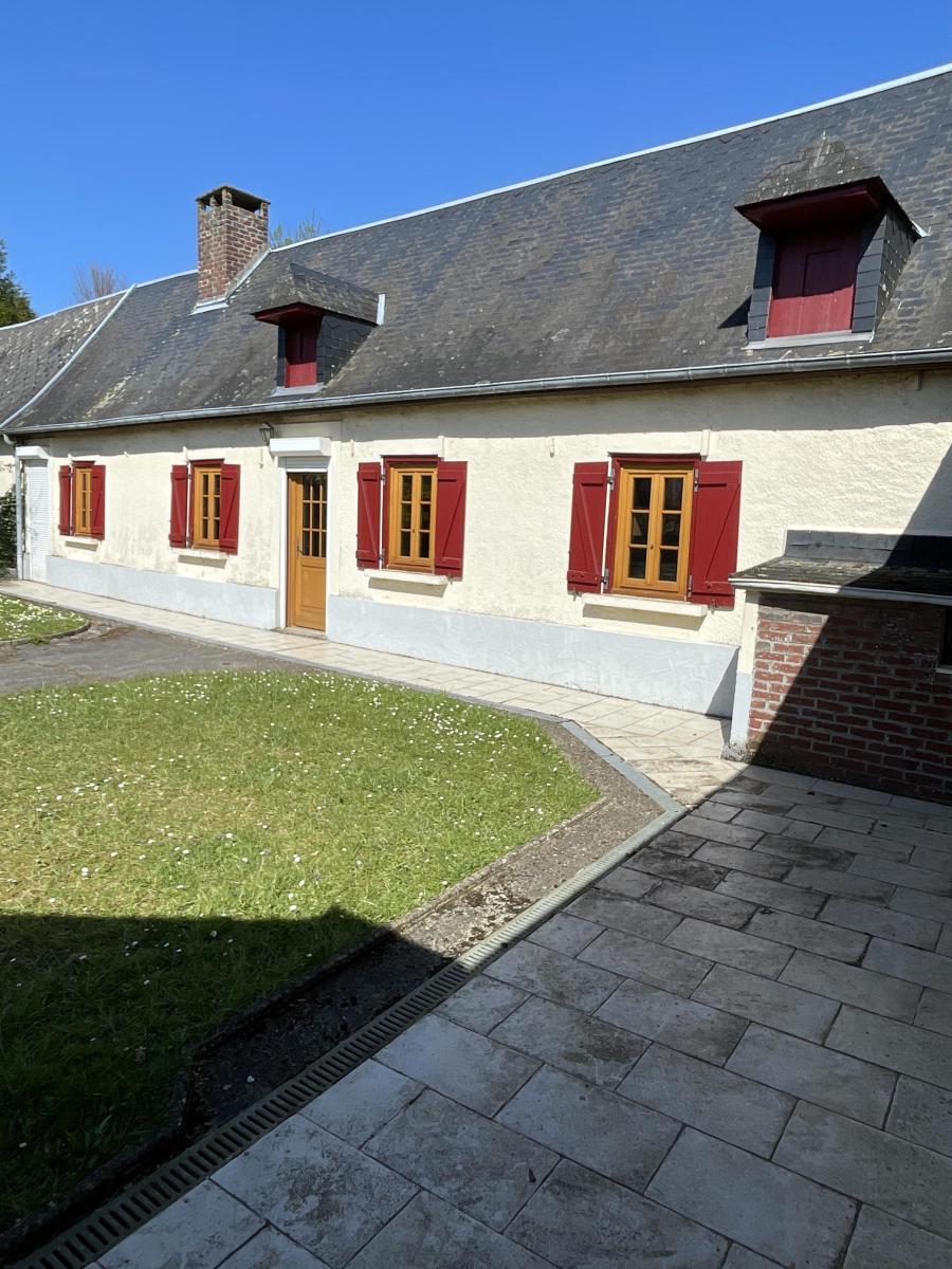 Maison de type fermette picarde en L bâtie sur 1048 m² de terrain avec 2 garages ( 45 m² environ ) comprenant au rez de chaussée : Entrée - cuisine équipée avec accès sur le jardin - salle de séjour & salon avec cheminée feu de bois - 2 chambres dont une avec cheminée et cabinet de toilette - bureau ou chambre - wc - salle de bains - Espace bibliothèque avec accès au 1er. - Au 1er étage : 1 chambre palière donnant sur une autre pièce - salle de bains avec wc - Grenier - Double vitrage bois - chauffage électrique - cour et jardin - 1 dépendance - 2 caves.